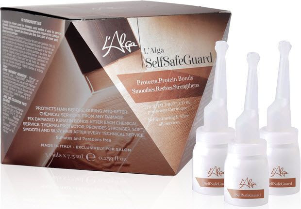 Набор SelfSafeGuard, предназначенный для домашнего ухода за волосами, содержит 3 флакона SelfSafeGuard, продлевает время действия салонной процедуры. Защита волос необходима, так как их красота и здоровье постоянно подрываются ежедневной укладкой, которая повреждает структуру и внутренние кератиновые связи. Без постоянной защиты целостность, прочность, блеск и мягкость волос исчезают через 3-5 недель (в зависимости от способа обработки волос). Использование L’Alga.SelfSafeGuard гарантирует жизнеспособность волос, компактную структуру, целостность, мягкость и блеск до следующего посещения салона.