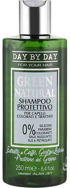 Шампунь Alan Jey Green Natural Shampoo Protettivo предназначен для ухода за волосами, поврежденными в результате частого использования высоких температур и негативного воздействия химических компонентов средств для окрашивания. Продукт хорошо очищает кожу головы и локоны, восстанавливает поврежденные клетки, активно защищает и укрепляет цвет окрашенных прядей. Протеины пшеницы легко проникают в клетки, заполняют пустоты, запаивают секущиеся кончики, придают локонам силу, делают их плотными, гладкими и блестящими. Экстракт гинкго билоба обладает противовоспалительными, антиоксидантными свойствами, регулирует работу сальных желез, ускоряет циркуляцию крови, стимулирует процессы регенерации, нейтрализует активность свободных радикалов, защищает от ультрафиолетового излучения, улучшает общее состояние кожного покрова и волос.