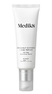 Потужна, передова і стабільна антиоксидантна система, що випускається в сироватці легкої і не містить масла. До складу Breakout Defense + Age Repair входить медикаментозний коректор PCA - революційний інгредієнт дослідження Medik8 Firewall, що володіє оптимальною антиоксидантною ефективністю, в 40 разів перевершує ефективність звичайної L-аскорбінової кислоти і посилений бета-глюканом і ніацинамідом, який діє , підтримуючи функціонування шкіри у кращому вигляді. Зменшує набряки, дискомфорт та почервоніння, пов'язані з «угревими» плямами та перевагами ніацинаміду для загоєння ран, щоб допомогти шкірі відновлюватися після проривів. З Breakout Defense + Age Repair шкіра захищена від шкідливих вільних радикалів та шкоди навколишнього середовища та захищена від передчасного старіння.