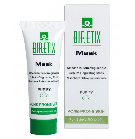 Маска BiRetix особливо рекомендується для догляду за чутливою та запаленою шкірою, вона контролює надмірну секрецію шкірного сала, викликану різними шкірними патологіями.