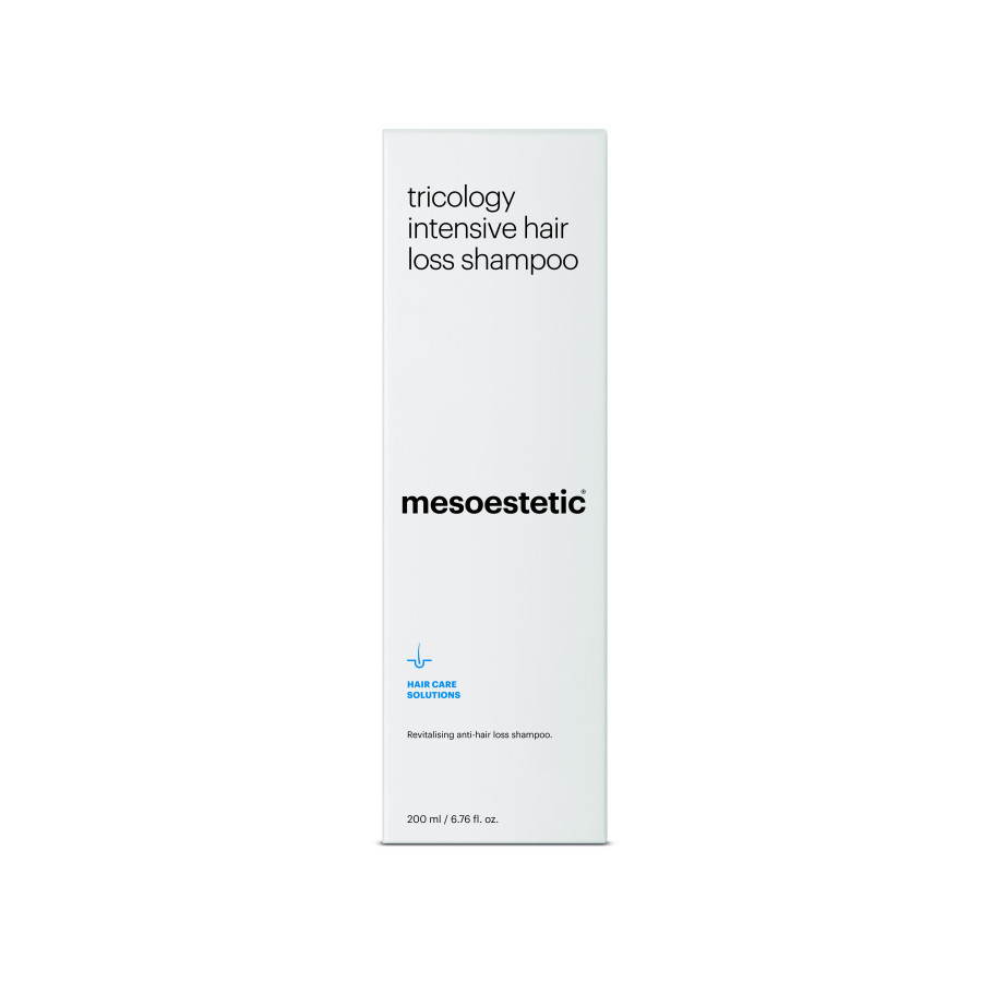 Інтенсивний шампунь проти випадіння волосся Tricology intensive hair loss shampoo (у складі Сереноа репенс, вітаміни PP, B6, цинк) делікатно очищає, має рН сумісний з рівнем рН шкіри голови, запобігає розвитку андрогенної алопеції у чоловіків і жінок. Стимулює кровообіг, сприяючи проникненню поживних компонентів, зволожує шкіру голови, розгладжує волосся, не викликає подразнення та сверблячки. Використовується вранці після інтенсивного лосьйону для росту волосся.