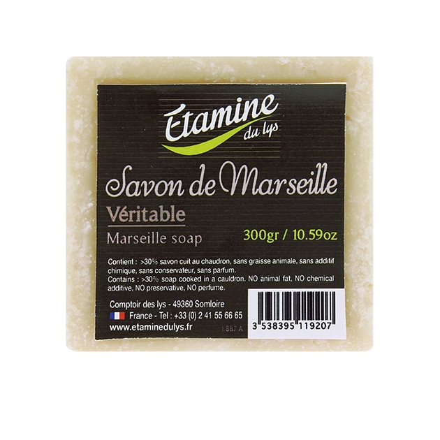 Мыло в бруске "Марсель" Etamine du Lys - многоцелевой очиститель. Подходит для мытья рук и тела, а также для стирки белья (ручная стирка и стиральная машина), для мытья полов. Также можно использовать как пятновыводитель. Мыло, приготовленное в котле по традиционному методу Марселя. Хорошее средство для удаления жира.