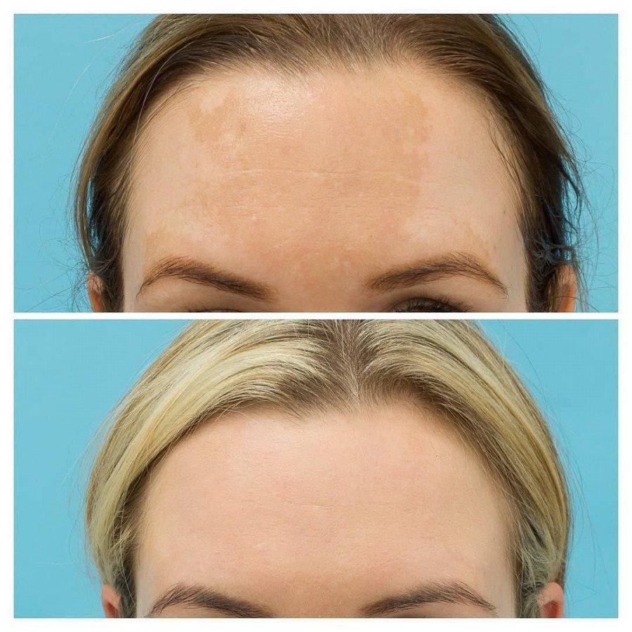 Использовать лечение dermamelan два раза в день с последующим применением melan recovery и mesoprotech melan 130 pigment control во время ежедневного применения.