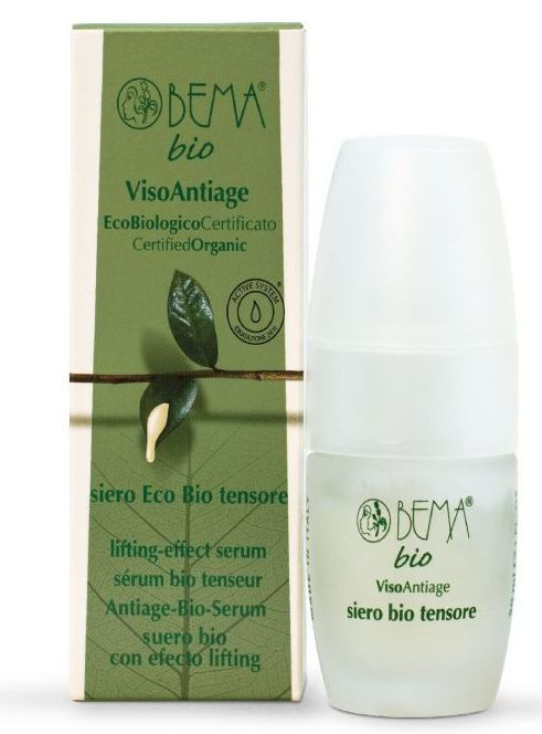 Формула органічної біосироватки Bema Viso Antiage Lifting Effect Bio Serum спеціально розроблена для догляду за зрілою та вимогливою шкірою. Завдяки високій концентрації активних компонентів (чисті екстракти арктичної ожини, бобів сої, морошки, плодів оливи, женьшеню та азіатського щитолистника, ізофлавоноїди сої) сироватка уповільнює процеси старіння шкіри, розгладжує її та зміцнює, помітно скорочує, помітно скорочує. Натуральна біосироватка Bema Cosmetici Bema Viso Antiage Lifting Effect Bio Serum підтримує водний баланс шкіри, робить її еластичною і м'якою, зволожує та захищає.