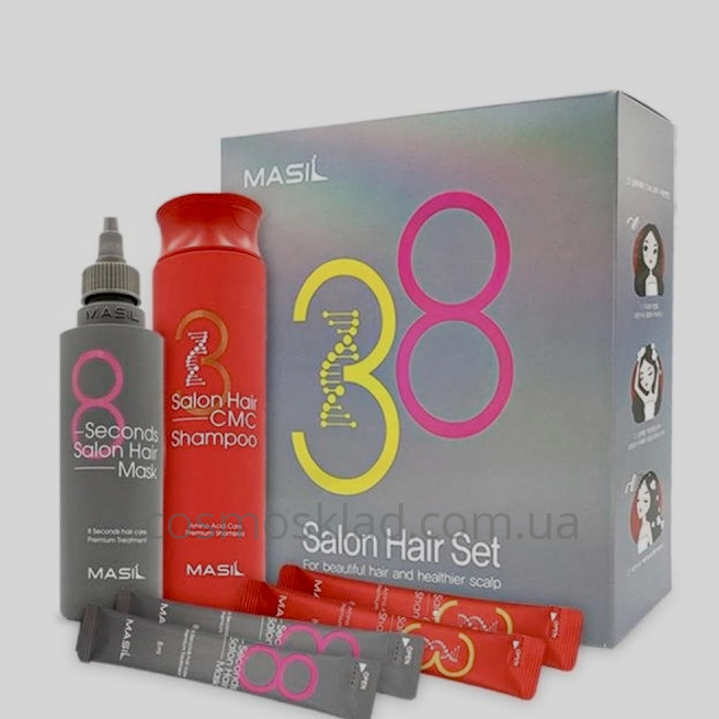 Відновлення волосся завжди дуже трудомісткий процес, який можна полегшити використовуючи спеціальні засоби. Набір продуктів Masil 38 Seconds Salon Hair Set містить усі необхідні для того, щоб якісно очистити локони від забруднень, а потім посилено наситити їх. Делікатний шампунь ніжно видаляє всі види забруднень зі шкіри голови, не порушуючи природний рН дерми, не спричиняючи свербіж та стягнутість. Глибоко відновлююча маска всього за вісім секунд зможе подарувати волоссю розкішний блиск, сяйво та неперевершену гладкість. У складі засобів багато рослинних екстрактів, які сприятливо впливають на стан пошкодженої та чутливої шкіри. Екстракт зеленого чаю заспокоює і освіжає, має високі антиоксидантні властивості, прискорює ріст волосся, усуває сухість. Олія макадамії пом'якшує і живить, насичує структуру волосся корисними жирами, усуває тьмяність і сухість, розгладжує пасма, знімає пухнастість та статику.