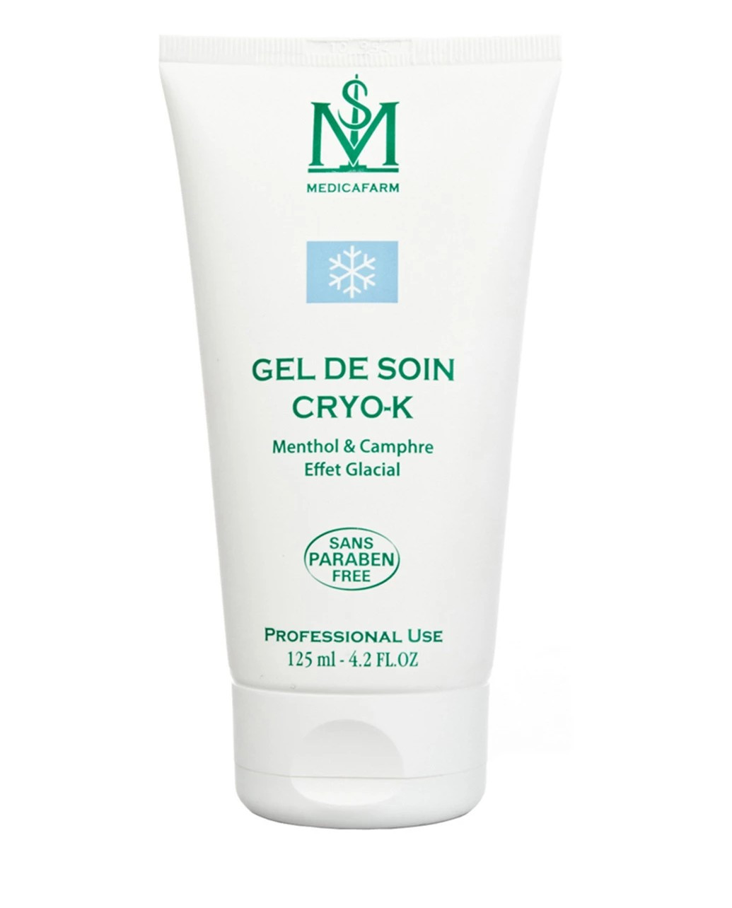 Арніка: заспокоює біль і припухлості в м'язах, суглобах і судинах. Дозволяє лікувати гематоми, м'язові порушення і полегшує пов'язані з ними болю і запалення. Ментол: моделює відчуття інтенсивного холоду, сприяє відтоку крові, полегшує дренаж, циркуляцію і м'язове розслаблення. Протизапальні властивості, місцева анестезія, тонус судин. Сприяє виведенню токсинів. Камфора: легка анестезія. Ефірна олія перцевої м'яти: регуляція припливу крові і анестезія. Інгредієнти: очищена вода, спирт денат, екстракт гірської арніки, ПЕГ-40 гідрогенізована касторова олія, ППГ-1 ПЕГ-9 лаурил гліколь ефір, ментол, карбомер, гідроксид натрію, ефірна олія перцевої м'яти, бензиловий спирт, метілхлороізотіазолінон, метілізотіазолінон, цитраль, лімонен. Технічні характеристики: Водно-розчинний гель. Не залишає плям, не прилипає, не забруднює обладнання. Проводить ультразвук, має гарну електропровідністю. Зберігає баланс рН шкіри, швидко вбирається. Застосування: Зменшує болі в м'язах і судинній системі. Легкий у використанні, наноситься зонально достатнім шаром 2 рази на день.