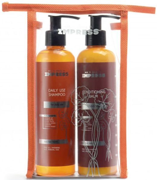 Кошти з набору Impress For Daily Use Set підходять для щоденного застосування, шампунь та бальзам – кондиціонер не містить шкідливих хімічних сполук, що негативно впливають на стан волосся. Склад продуктів багатий на поживні та відновлюючі компоненти, які допомагають щодня підтримувати захисний шар локонів, регенерувати пошкоджені ділянки та робити пасма більш еластичними та пружними. Фільтрат муцину равлика розгладжує і відновлює пасма, насичує їх колагеном і еластином, допомагає ущільнити ділянки, що витончилися, запобігає розщепленню кінчиків. Екстракт центели азіатської бореться з лупою, знімає стрес шкіри, покращує зростання нових волосків, запобігає появі дискомфортних відчуттів у вигляді сверблячки та стягнутості.