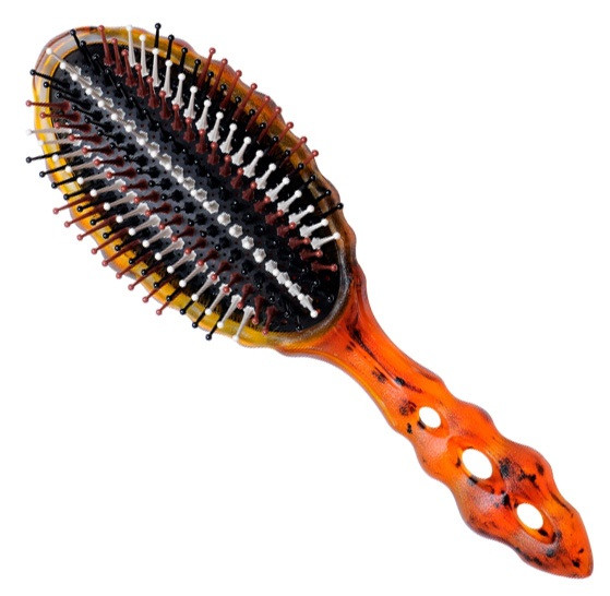 Щетина оригінального дизайну. Оскільки закінчення щетини закруглене, щетина делікатна до шкіри голови, що дозволяє міцно захопити волосся. Основа щетини шестикутна, а не кругла, що дозволяє просушувати волосся під різними кутами. Також шестикутна біля основи щетина більш стійка навіть до сильного натягу.