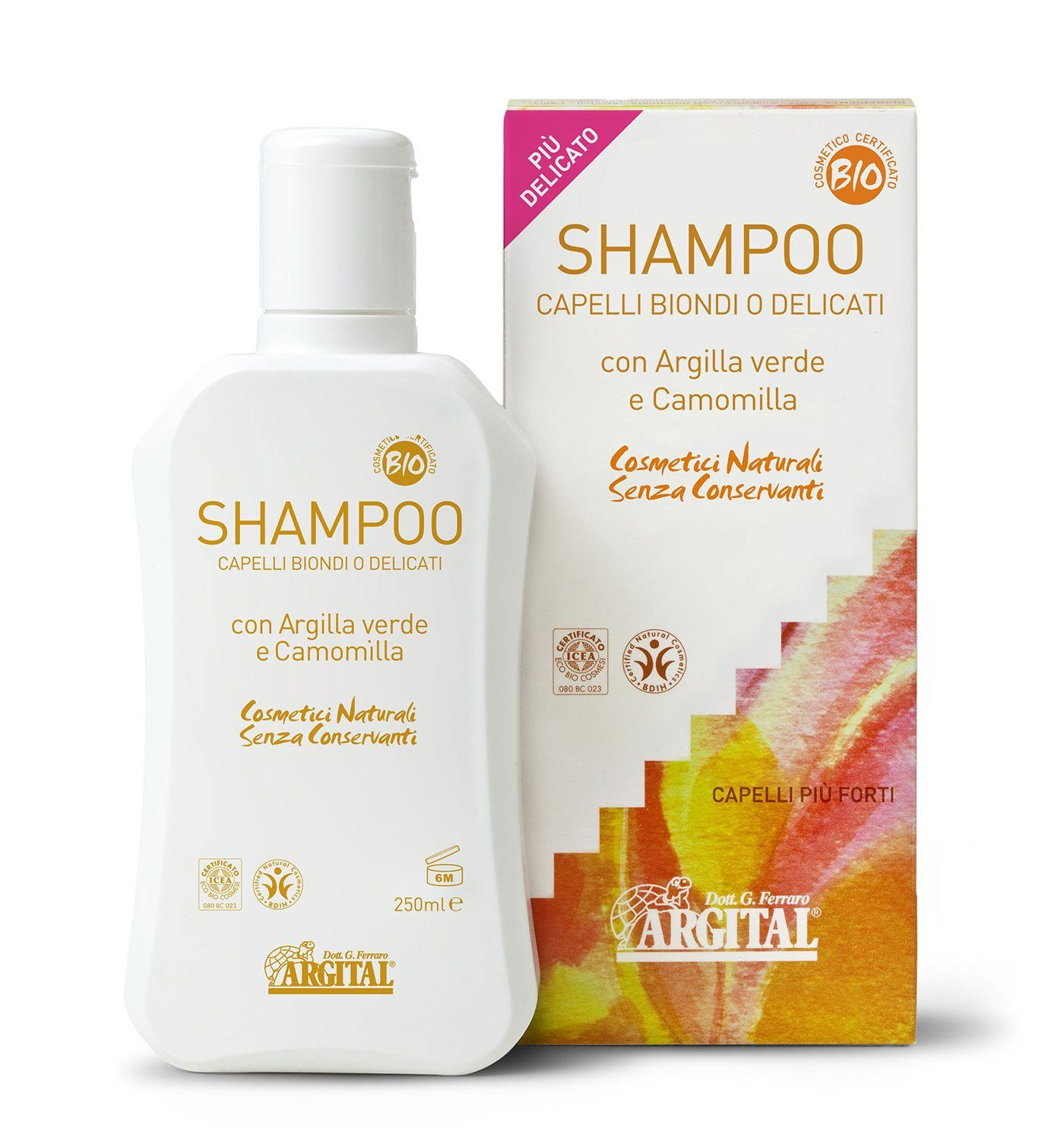 Формула органічного шампуню спеціально розроблена для догляду за світлим, тонким і ламким волоссям. Завдяки екстракту ромашки, що входить до складу, він підкреслює природний колір волосся і дарує їм золотистий блиск; за допомогою зеленої глини, пшениці, ефірних олій лаванди, гвоздики, пачулі та іланг-ілангу зміцнює волосся і надає їм м'якості. Натуральний шампунь без сульфатів ідеально підходить для догляду за дитячим волоссям.
