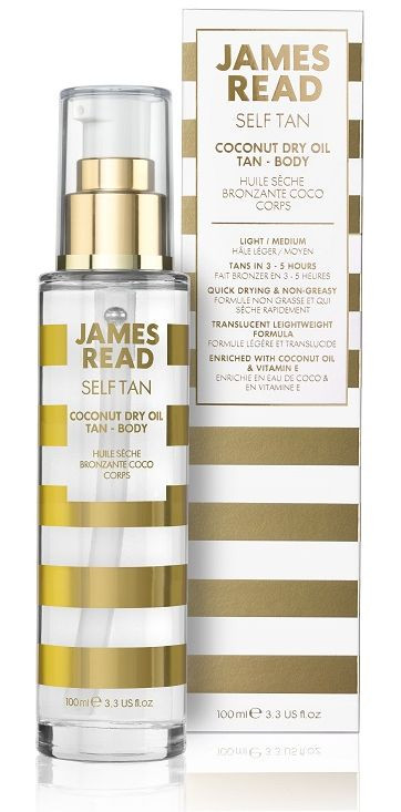Суха кокосова олія з ефектом засмаги James Read Coconut Dry Oil Tan Body моментально висихає і не липне до рук та одягу. Входять до складу вітаміну Е і кокосова олія живлять і зволожують шкіру, а антиоксидантний комплекс забезпечує захист від зовнішніх впливів навколишнього середовища. Підходить для шкіри будь-якого тону.